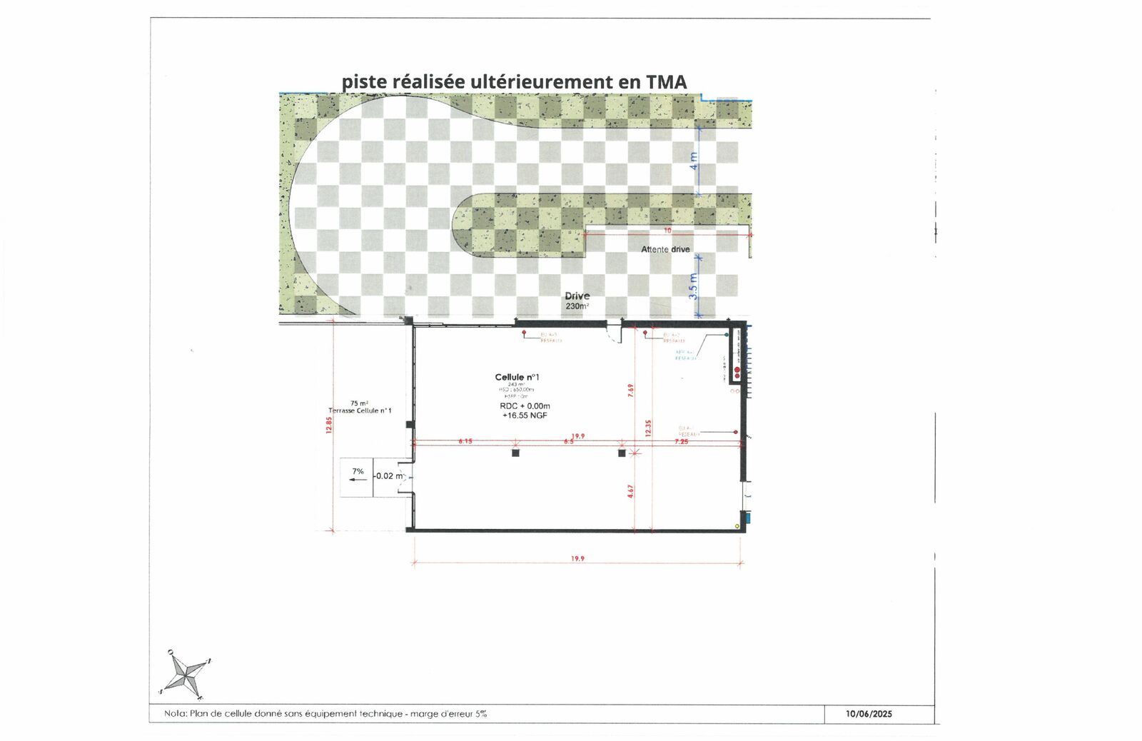 - Dans un complexe hôtelier, cinéma et bureaux, un local commercial de 243m2 plein sud, une terrasse privative de 75m2 et un drive de 230m2 réalisé à la charge du Bailleur